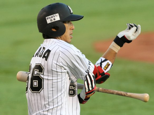 8番 里崎 四球 フルカウントから投じられたフォークが内角高めに外れるのを見極めた! |