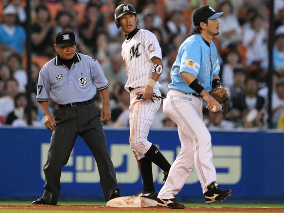 【千葉ロッテ選手交代】 1塁ランナー・福浦→代走・根元 |