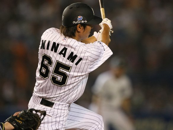 9番 南竜介 左中三 0-1から低めのチェンジアップをはじき返した打球は、左中間へ追い掛けるセンターの伸ばしたグラブの先を抜けていった! 打った南竜介は激走して3塁に到達! 今度こそ杉内から得点を奪う! |