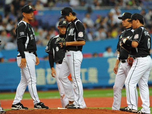 6番 李スンヨプ 中犠飛 1-2からの4球目、外角のストレートを打ち上げさせた打球は、センターが捕球。タッチアップからスタートを切った3塁ランナーを刺すべく素早い中継プレーでバックホームしたものの、ランナーの鋭いスライディングがわずかに早く、セーフとなった。1対1。 ![]() 1