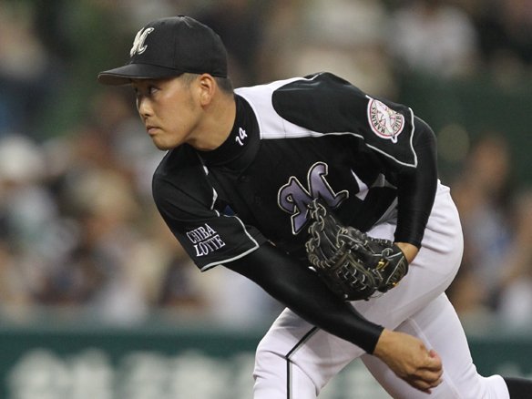 投手 涌井 5番 福浦 中飛 0-1から低めのカーブを打ち上げてしまい、前進するセンターに捕球された。 |