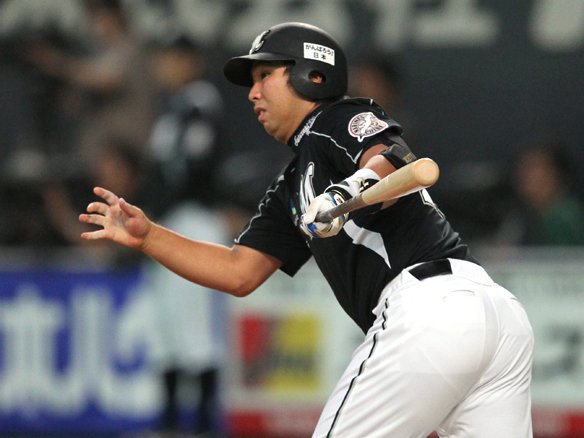 変化球を引っ張り安打を放つ里崎!