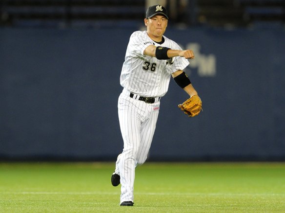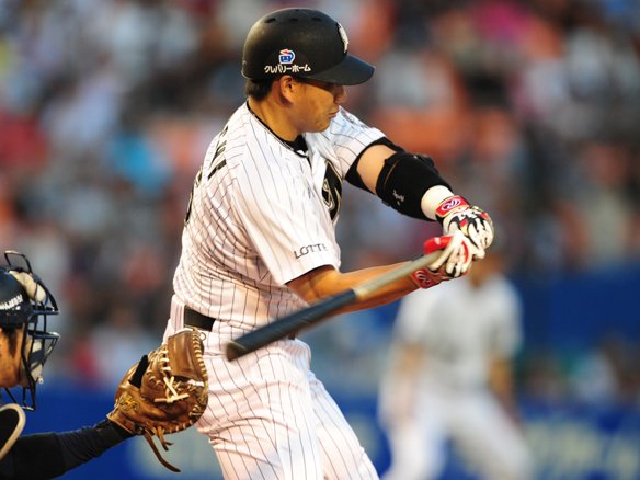 6番 李スンヨプ 遊直 2-2からの外角低めのストレートを流し打たれるも、打球は前進守備を敷いていたショート正面へのライナーとなった。 |