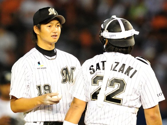 里崎はマウンドへ駆け寄り唐川に声を掛ける