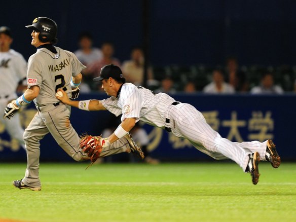 渡辺正は鈴木のゴロを処理しバックホーム!