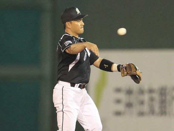 6番 福浦 二ゴ 2-2から低めのフォークを引っ張るも、ゴロの打球を一二塁間でセカンドにキャッチされる。セカンドは2塁へとボールを送り1塁ランナーはフォースアウト。しかし1塁へは投げることができずランナーが入れ替わる形となった。 |