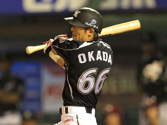 2番 岡田 中安 1-1から外角高めのストレートに詰まらされながらも、しっかりと振り抜いた打球はセンター前に弾んだ!! |
