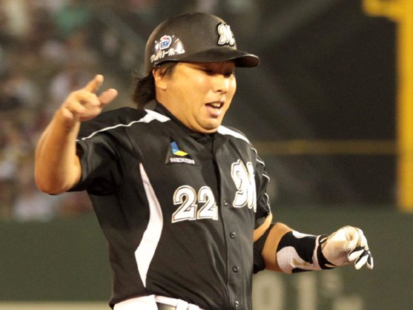 点差を詰められた直後のイニング。ここで里崎がダイヤモンドを駆け回る激走を見せて、1点を奪いました!! |