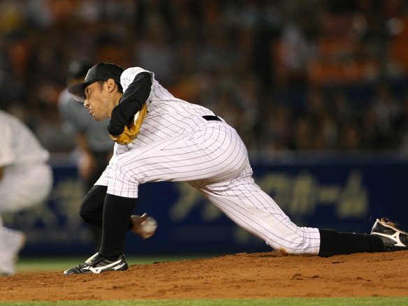 投手 渡辺俊 9番 星孝 3-0から投じたストレートが外角へ大きく外れた。 |