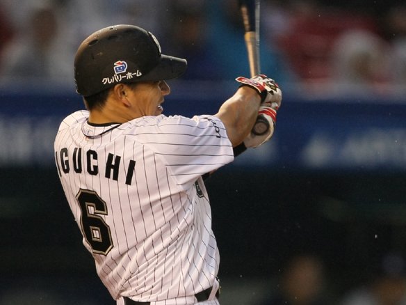 井口は華麗な流し打ちを見せるも打球はライトの正面を突いてしまう