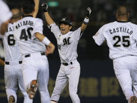 7番 里崎 遊選 2-2から内角へのシンカーにバットを折られ、前進守備を敷くショートへのゴロとなる。本塁へ送球されるが、3塁ランナー・今江が先に滑り込んで生還! 3対3! 土壇場で同点に追い付いた! ![]() 4