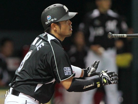 7番 里崎 遊ゴ 1-2からの外角へのフォークを引っ張るも、三遊間を破ろうかという打球をショートにおさえられ、1塁へ送球されてしまう。里崎が気迫のヘッドスライディングを敢行するも及ばず。 |