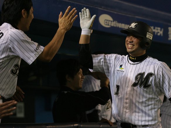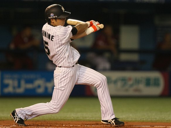 5番 井口 左安 1-1から外角低めのスライダーにタイミングを合わせて引っ張り、レフト前へ運んだ! |