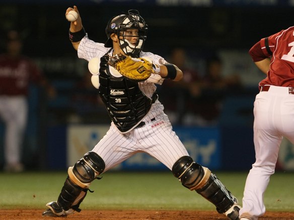 田中雅が素早く2塁へ送球するも盗塁を許す