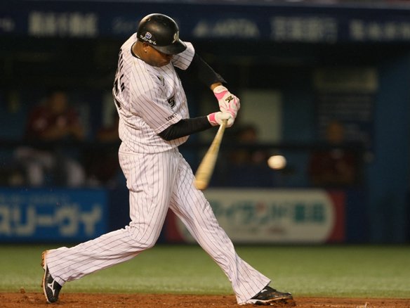 6番 ガルシア 左翼二 1-0から内角へのストレートを引っ張られた鋭い打球が3塁線を破っていった。レフトがフェンスに到達した打球を処理する間に、1塁ランナーは3塁へ進み、打ったガルシアが2塁へ。 |