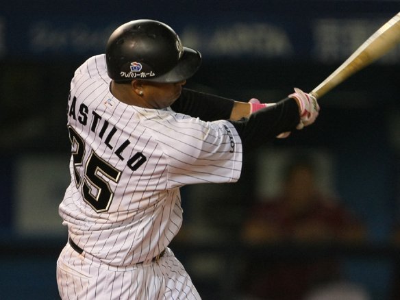 カスティーヨはフェンス直撃の二塁打を放つ!