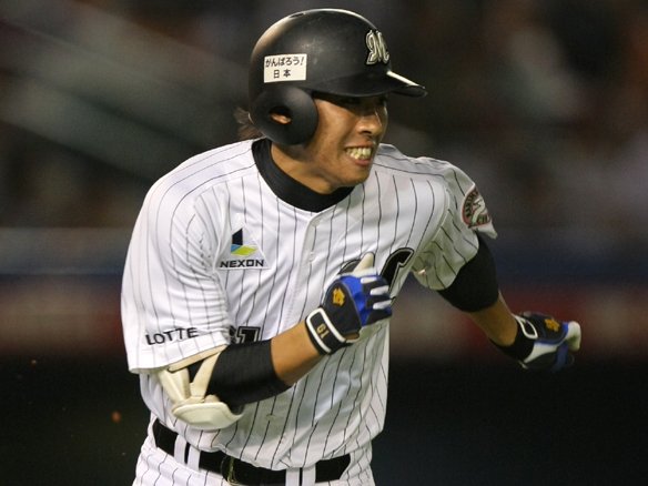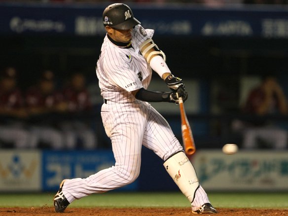 5番 井口 二ゴ 1-2からの5球目、外角高めのスライダーにバットを伸ばして合わせた打球は、強烈なスピンがかかって一二塁間に転がる。しかし、回り込んだセカンドに追い付かれて、1塁へ送球されてしまった。 |