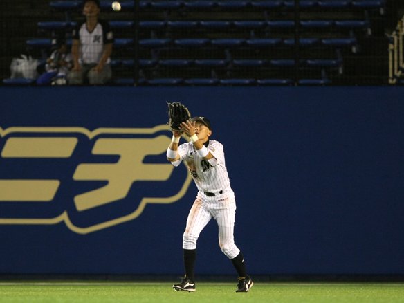 9番 聖澤 中飛 1-0から外角寄り高めのストレートをバットの先で打ち上げさせた打球は、センターがほぼ定位置でキャッチ!! |