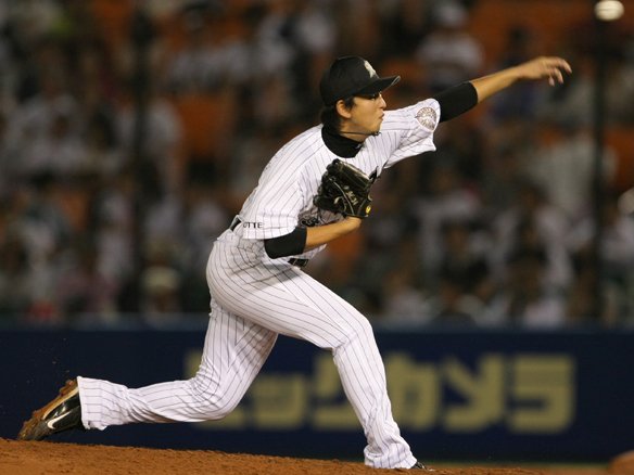 投手 田中 5番 井口 中飛 1-0から外角高めのストレートをバットの先で打ち上げた打球は、センターに捕球されてしまった。 |