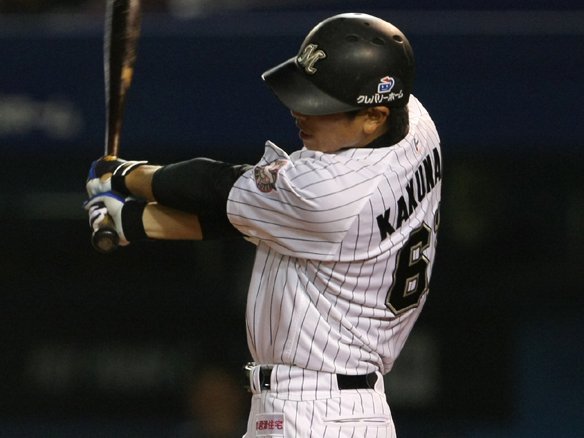7番 角中 左翼二 2-0から外角高めのストレートを逆らわずにはじき返した打球はレフト線付近に飛び、ワンバウンドでフェンスに到達。打った角中は一気に2塁へ!! |