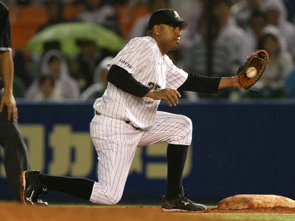 5番 ガルシア 四球 1-0からの2球目、外角に大きく外れるスライダーをキャッチャーが後逸。その間に3塁ランナーがホームイン。0対5。1塁ランナー、2塁ランナーもそれぞれ進塁。記録はキャッチャーのパスボール。 |