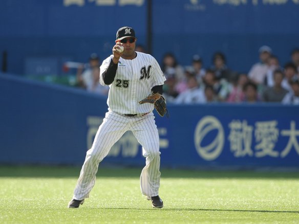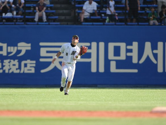 6番 李スンヨプ 左安 初球の外角低めの変化球で詰まらせるも、打球は懸命に後方に下がったショートの頭上を越えてしまった。 |