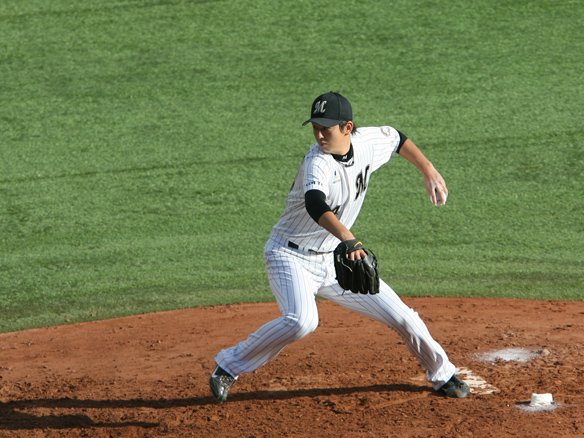 6番 李スンヨプ 一ゴ 3-1からの外角高めのストレートを打たせると、鋭いゴロをファーストが腰を落としてしっかりつかんだ。 |