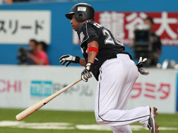 6番 李スンヨプ 右中二 1-1からの外角低めへのチェンジアップをすくい上げられると、高々と弧を描いた打球がフェンス直撃。2者が生還し4対3。 ![]() 3