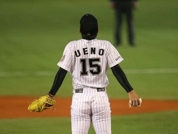 投手 上野 1番 川崎 二ゴ 1-1から外角高めのシュートをたたかれるも、セカンドの正面を突くゴロとなった。 |
