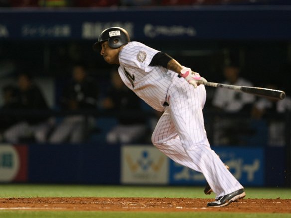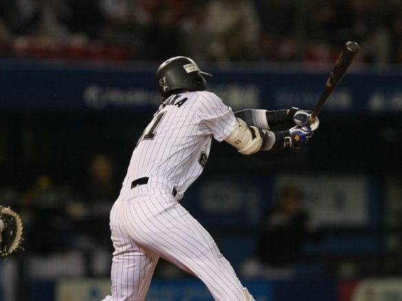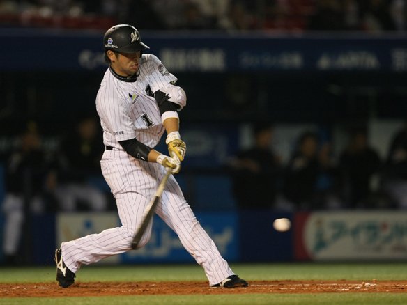 7番 福浦 中安 1-1から低めの変化球を捉え、セカンドの横を抜ける痛烈なゴロとなった! |