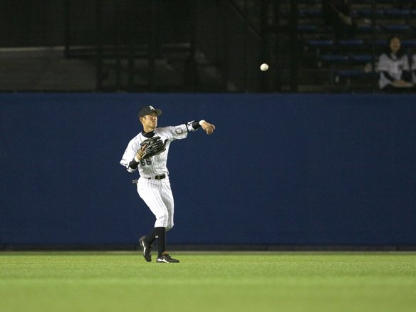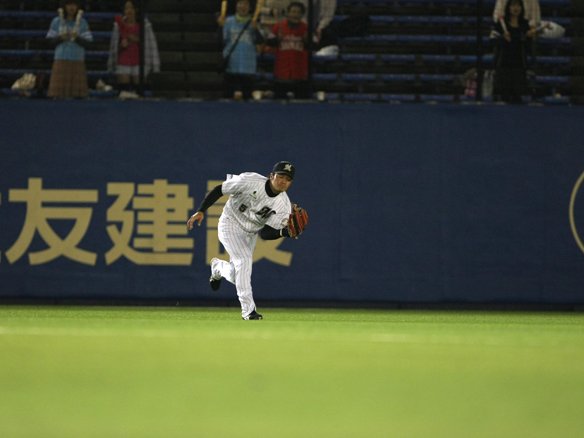 1番 川崎 左飛 2-1から低めのストレートで打ち上げさせた打球は、レフトがガッチリとつかんだ。 |