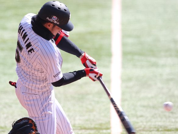 5番 フェルナンデス 中安 1-0から外角寄り高めに浮いたスライダーをはじき返された打球は、ショートの頭上を越えて左中間に弾んだ。2塁ランナーがホームイン。1対2。1塁ランナーは3塁へ。 ![]() 1