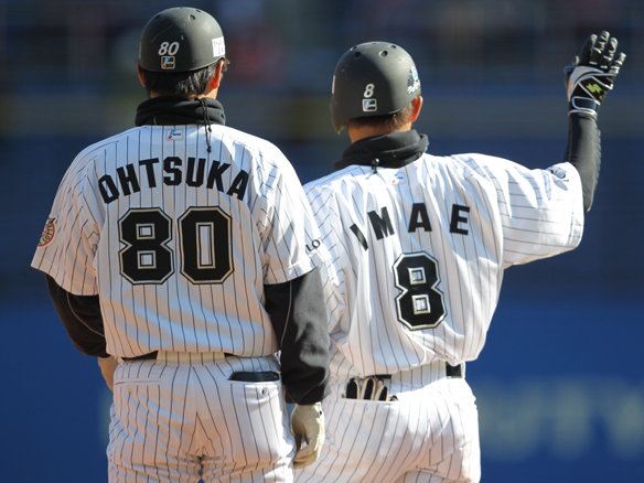 8番 嶋 中安 バウンドした投球を体に受けたキャッチャー・里崎はその場でうずくまり、試合が一時中断していましたが、無事に試合再開となりました。 |