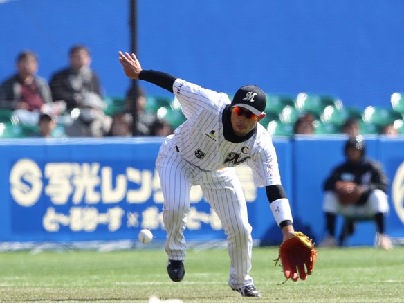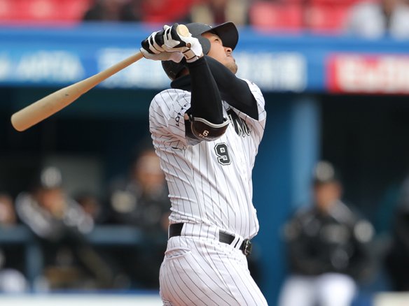代打・福浦が初球から積極的にスイングするも二飛に倒れる