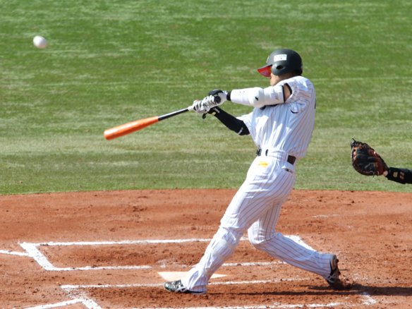 4番 サブロー 三ゴ 0-1から真ん中の変化球を引っ張った打球は、高いバウンドとなりサードに処理されてしまった。 |