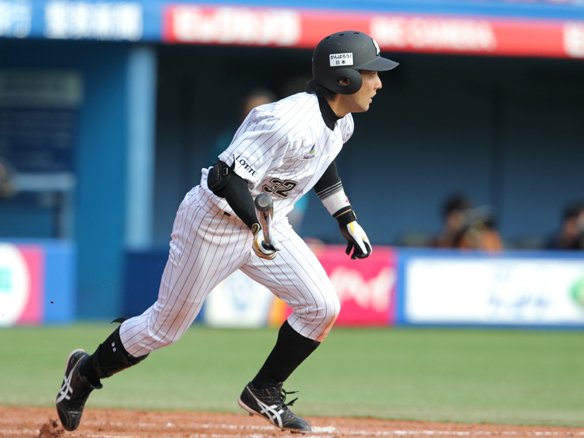 2番 根元 中安 1-0から外角のストレートをはじき返し、打球は低いゴロとなり二遊間をしぶとく破ってセンター前へ! |