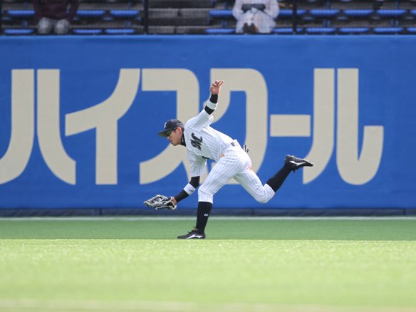 中堅手・岡田が俊足を飛ばし田中賢の打球をキャッチ!