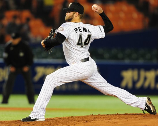 鋭いまなざしで初回を無失点に封じるペン