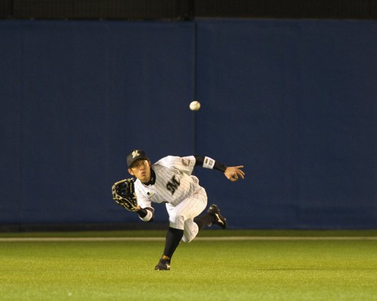 岡田がダイビングしてスーパーキャッチ!