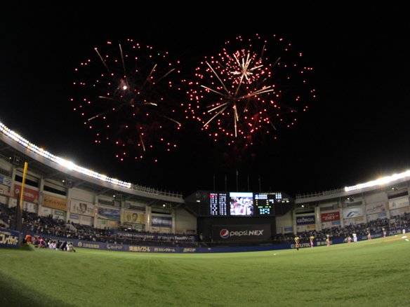 イニング終了後には花火が打ち上げられる