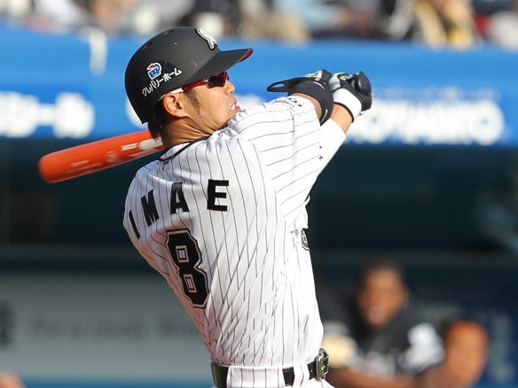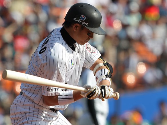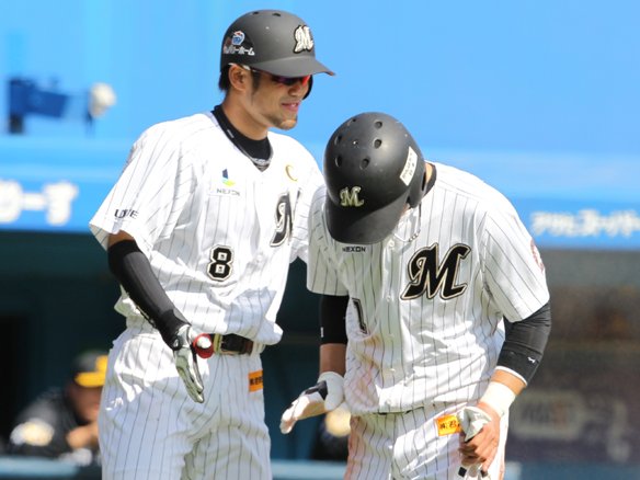 ここまで2打数2安打2打点と好調の里崎に期待が集まりましたが、レフトフライに倒れ3者凡退に終わりました。成瀬が7回表も無失点に抑え、ラッキー7の攻撃に勢いを与えていきたい! |