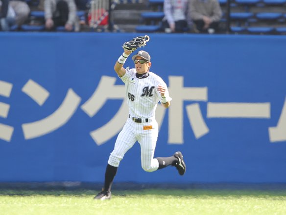 8番 里崎 左飛 1-1から外角のカーブを引っ張り、打球は大きな当たりとなって左中間へ飛んでいくがウォーニングゾーンでレフトにジャンピングキャッチされてしまった。 |