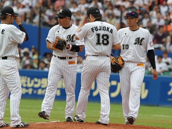 藤岡はランナーこそ背負うも女房役・里崎の盗塁阻止もあって無失点。見事に立ち直りました! 1点リードに満足することなく、追加点を奪いリードを広げていきましょう! |