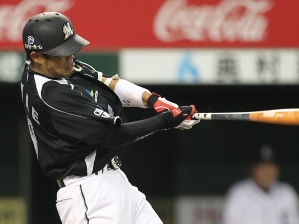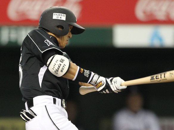 4月20日の試合でも、9回に代打で登場してセンターにヒットを放っている5番・角中。今日も甘く入ったストレートをしっかり捉えて、試合を振り出しに戻しました! |