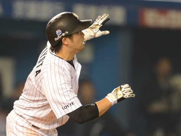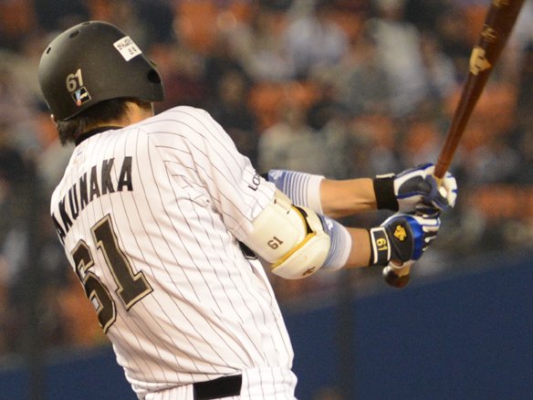 5番 角中 二ゴ失 0-1から外角高めのスライダーを引っ張った打球は、セカンドの正面に転がる。しかし、セカンドが球をこぼして送球できず、角中は1塁を駆け抜けた。2塁ランナーは3塁へ。記録はセカンドのエラー。 |