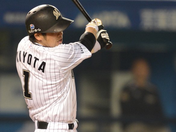 5番 角中 四球 フルカウントから外角高めに外れるストレートを見送った。 |