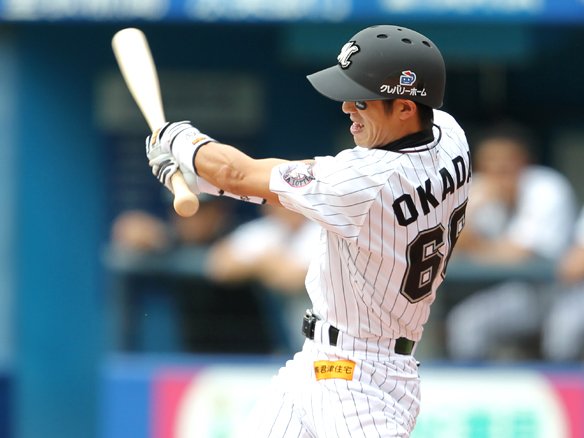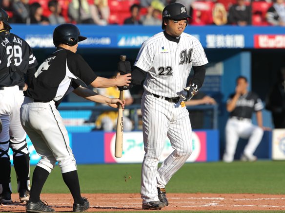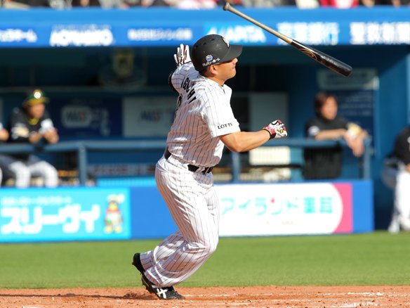 4番 サブロー 四球 3-1から外角高めへ勝負を避けるかのようにストレートを外され、サブローは悠然と1塁へ歩いた。 |