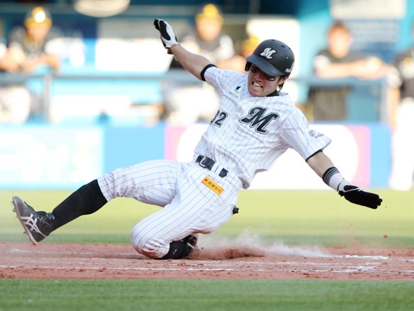 相手3番手・森福から根元が3ベースヒットを放ち好機を演出すると、敬遠策から満塁の場面で打席には角中。迷わず振り抜いた打球は左中間へ飛び、犠牲フライで3対2と、見事今季初のサヨナラ勝利を収めました!! |