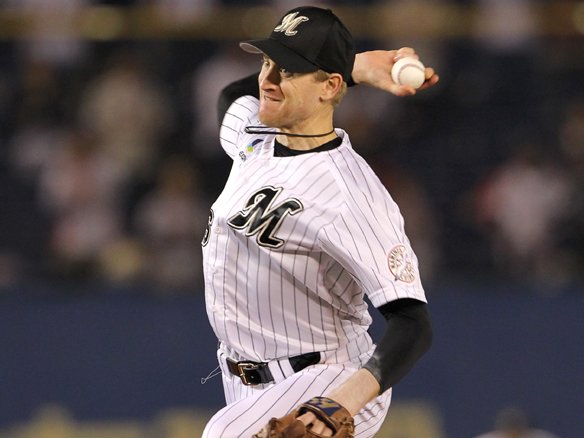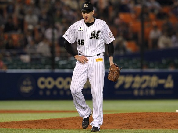 2死からポンポンと連打を浴びたグライシンガーでしたが、落ち着いたマウンドさばきでここも無失点に切り抜けました。ここはマリーンズ打線も連打を見せて、試合の均衡を破りたい!! |