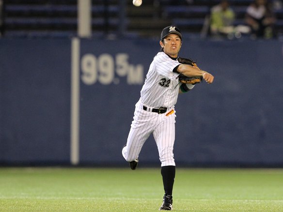 投手 赤川 5番 角中 二ゴ失 3-1から外角高めのストレートを思い切り引っ張った強いゴロは、セカンドの正面を突いてしまった。しかし、1塁への送球が本塁の方向にそれて、ファーストの足が離れた。記録はセカンドのエラー。 |
